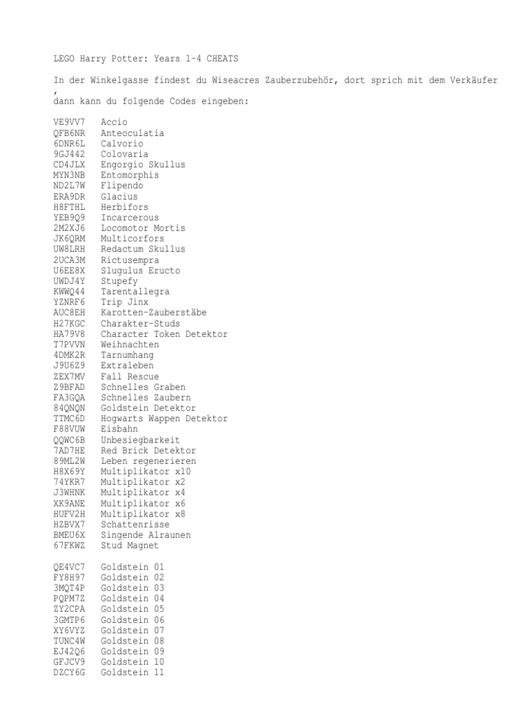 LEGO Harry Potter cheats - Full codes list for Years 1-4 Years 5-7 on PS4 Switch Xbox One PS3 Xbox 360 Wii PC Cast spells collect Golden Bricks and get more Studs fast with LEGO Harry. Stud Magnet 1-4 Red Bricks Cheat codes Years 1-4 Gold Bricks Cheat Codes. You will see a giant pile of gold bricks.